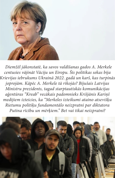 Juris Lorencs 14.10.2025 Šajās dienās daudz tiek apspriesta Angeles Merkeles skandalozā intervija ungāru medijam Partizan. Tajā bijusī Vācijas kanclere vaino Poliju un Baltijas valstis, ka tās esot izprovocējušas Krievijas agresiju pret Ukrainu. Izrādās, šo valstu līderu nevēlēšanās uzturēt Eiropas dialogu ar prezidentu Vladimiru Putinu esot pastiprinājusi viņa agresivitāti un kļuvusi par iemeslu Krievijas uzbrukumam Ukrainai. Bet A. Merkele nav tik dumja, lai nezinātu, ka 2021. gada decembrī Krievija izvirzīja ultimātu Rietumiem, prasību savākt pekeles un aizvākties. Konkrētāk izvest ārvalstu bruņotos spēkus un militāro infrastruktūru no to valstu teritorijām, kas pievienojās NATO pēc 1997. gada, tātad arī no Latvijas. Pēc tam, kad ASV un NATO atteicās izpildīt šīs Maskavas prasības, 2022. gada 24. februārī Krievija uzsāka iebrukumu Ukrainā. Kāpēc Merkele runā šādas lietas? Savas muļķības un spītīga paštaisnuma dēļ? Bet varbūt mums ir darīšana Kremļa aģenti, kas tiek aktivizēta vajadzīgajā laikā? Iespējams. Bet vispirms paraudzīsimies vēsturē. 1954. gadā dzimušās A. Merkeles politiskā biogrāfija sākās komunistiskajā Austrumvācijā, kur viņa bija tā saucamās Brīvās Vācu jaunatnes (Freie Deutsche Jugend, analogs padomju komjaunatnei) aktīviste. Pēc abu Vāciju apvienošanās viņa veikli pārmetās uz Kristīgo demokrātu partiju. Tur jauno censoni ievēroja kanclers Helmuts Kols, kurš 1991. gadā viņu uzaicināja savā valdībā vadīt Sieviešu un jaunatnes lietu ministriju. Ne velti A. Merkele tiek dēvēta par H. Kola politisko krustmeitu. Pēc 2005. gada Vācijas parlamenta vēlēšanām, kurās ar nelielu pārsvaru uzvarēja Kristīgie demokrāti, partija valdības vadītājas jeb kancleres amatam izvirzīja A. Merkeli. Šajā krēslā viņa atradās veselus 16 gadus, no 2005. gada novembra līdz 2021. gada decembrim. Lasīt vairāk ... |